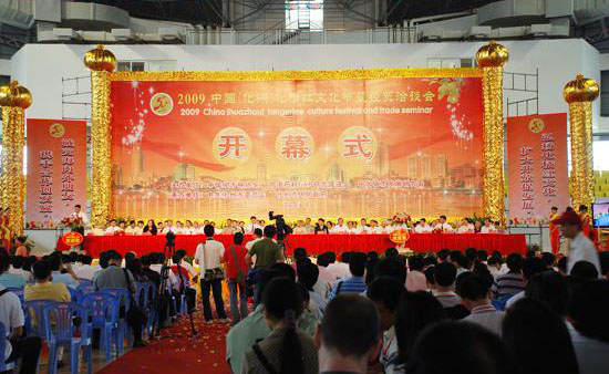 6月18日,150多万橘乡人民迎来了期盼已久的盛事—2009中国(化州)化橘红文化节暨经贸洽谈会在我市康景体育馆隆重举行。出席当天开幕式并在主席台前排就座的领导有:刘广运、唐豪、邓海光、解思忠、任德权、秦刚、招尚福、杨跃先、彭泽英、吴坚、王福成、冯立梅、宋寿金、陆庆彪、蔡敏君、张汉湘、林嘉騋、曾东、黄从南。参加开幕式的还有国家有关部委的领导,中国经济林协会、中国药材GAP研究促进会、中国城市发展研究会的领导、专家、教授,广东省有关厅(局)的领导,茂名市有关部门领导,周边兄弟县市的领导,化州籍在外工作的正处级以上领导及知名企业家,港澳台代表,省、市新闻记者,化州市四套班子领导,市各有关单位以及社会各界人士共4500多人,开幕式由化州市委副书记、市长黄从南主持。