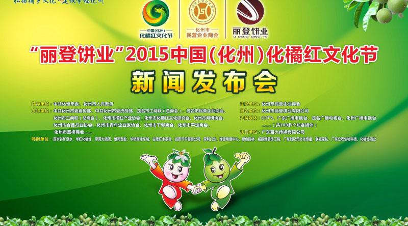 2015中国(化州)化橘红文化节将于8月24日至26日在化州市区举行。热情好客的化州人民热诚欢迎海内外各界嘉宾朋友前来化州参加“丽登饼业”2015中国(化州)化橘红文化节,探亲访友,旅游观光,交流合作,投资置业。