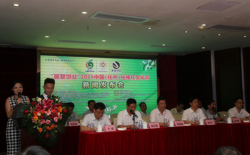 化州市民营企业商会会长冯孟尧先生、化州市丽登饼业有限公司董事长陈衍广先生、化州市化橘红产业协会副会长庄帝胜先生、化州市化橘红文化研究会副秘书长陈文操先生、化州市民营企业商会执行会长理事长陈万勇先生、茂名市民营企业商会党组副书记邱友坤先生,化州市民营企业商会执行会长监事长刘有盛先生、化州市民营企业商会常务副会长秘书长干成先生、化州市平定商会会长谢洪斌先生、化州市民营企业商会常务副会长李康健先生,以及来自社会各界的企业代表、嘉宾等150多人出席了本次发布会,与各大新闻媒体汇聚一堂,拉开了2015中国(化州)化橘红文化节的大幕。