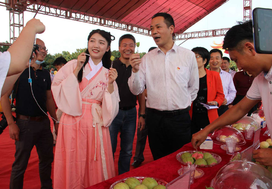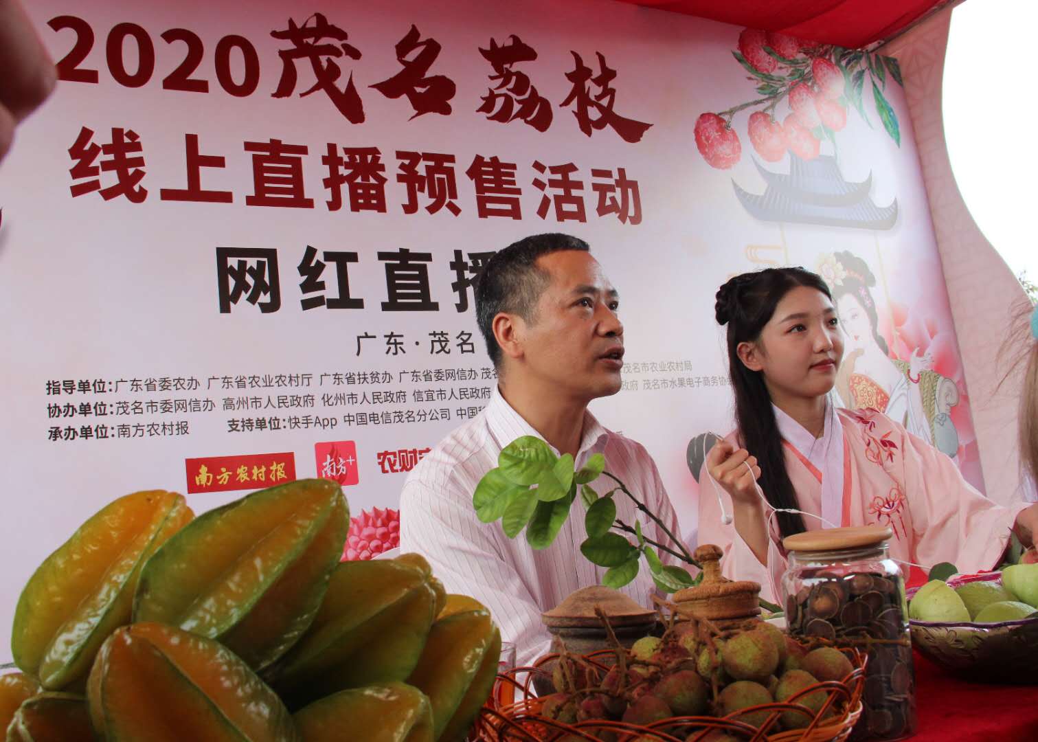 “化州是著名的水果之乡。水果种植面积达67.59万亩,产量46.9万吨,40万农户因果走上致富路,8000多名贫困户因果增加收入、脱贫致富。”直播不仅推介了化州荔枝,邓泽友还自豪地推介化州其它特色水果,“化州还盛产龙眼、黄皮、红杨桃、番石榴、火龙果、木菠萝、红心橙等名优水果,其中红杨桃、番石榴、无核黄皮等品种多次获得中国农业博览会“名牌产品”和“中华名果”称号。”