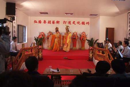 仪式最后,周玉瑞、赵果鲜、何刘生、朱春锋为市粤剧团排练场揭牌,并与参加仪式人员一起兴致勃勃地观看了由市粤剧团文武生傅建华和正印花旦庞秀英主演的首场折子戏。