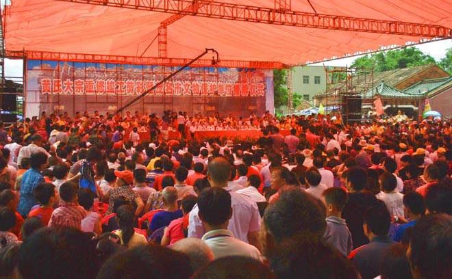 7月2日,茂名市文物保护单位黄氏大宗祠重修竣工剪彩暨茂名市文物保护单位授牌仪式在我市杨梅镇官地村隆重举行。茂名市政协副主席崔锡明,茂名市政协原副主席吴寿炎、许木咏,茂名市文广新局局长黄刚,茂名市文联主席肖力等,我市领导黄春梅、童以雄、李坚、邱岩、黄亚华、吴敬斌以及中国社科院、省文物考古研究所、省作协有关专家,我市市委宣传部、市文广新局、市新闻中心、市党史办、市地志办、市文联等部门领导出席仪式。来自国内外的黄氏宗亲、各级领导及各界嘉宾约2万多人,齐齐相聚,共同见证了黄氏大宗祠的盛大庆典。笑叙亲情友谊,畅谈和谐大计,同谋宗亲福祉,共谱幸福乐章。仪式由杨梅镇党委书记李务辉主持。
