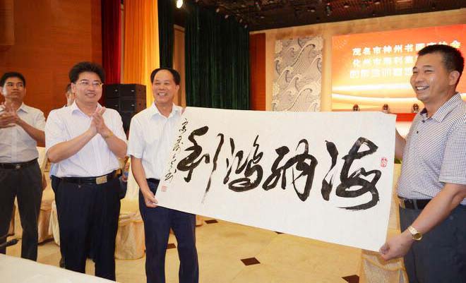 7月10日,茂名市神州书画家协会化州海利集团文化苑创作培训基地正式成立,并在市海利集团举行了揭牌仪式。我市市委副书记、市长林振光,茂名市人大常委会原常务副主任、茂名市神州书画家协会主席宋寿金,我市海利集团有限公司党支部书记、董事长李儒昌等为基地成立揭牌。来自全国、茂名和我市的知名书画家、书画爱好者等参加揭牌仪式。